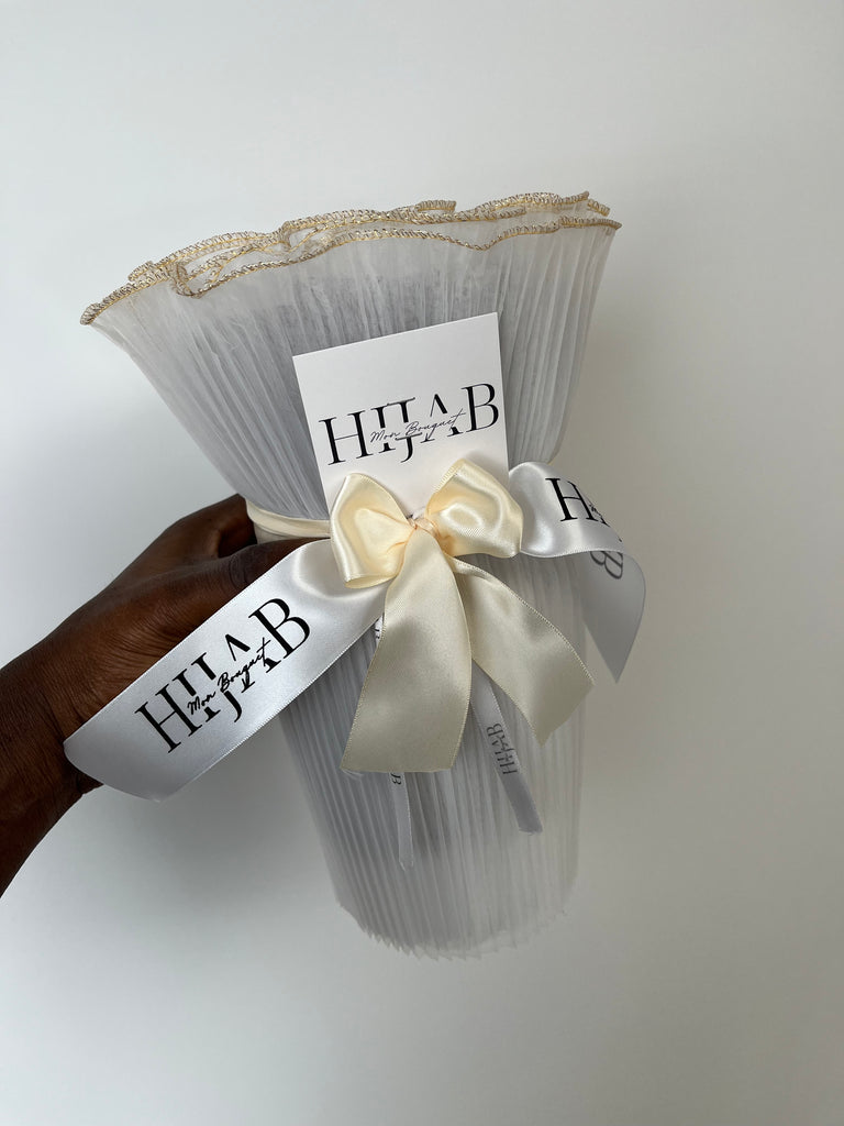 Le bouquet hijab nougatine a été conçu dans un emballage ggris